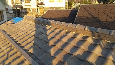 スタッフから内部の雨漏り跡の状況と屋根の位置関係を照らし合わせ、原因箇所の修繕をさせていただきました。瓦の状況等の確認をして、今後棟部分から雨漏りの可能性があることもご説明し、必要な部分の修繕をさせていただきました。