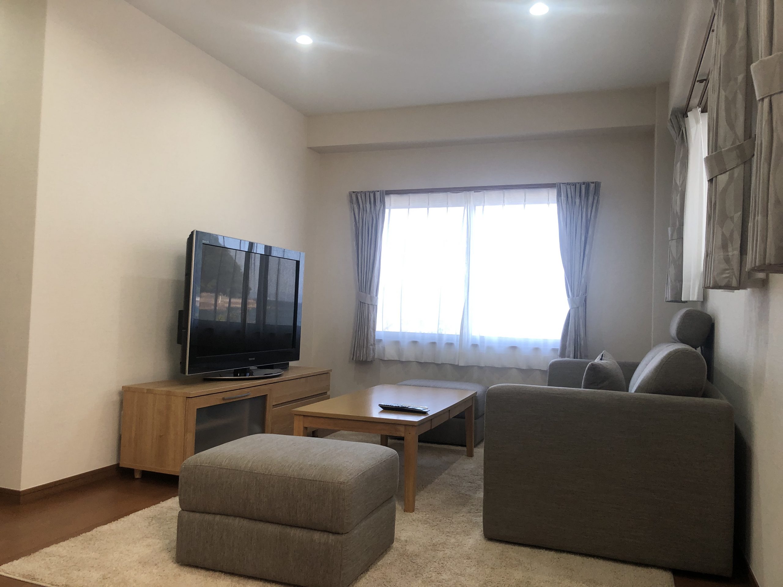 スタッフから白いクロスにダークブラウンのフローリングを組み合わせ、落ち着いたくつろげる部屋になりました。