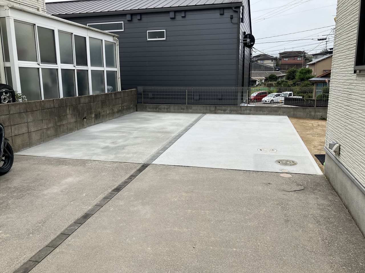 自宅に新たに来客用含め2台分駐車可能なスペースが欲しいため、庭の一部を土間打ちにしたい、とのご要望をいただきました。