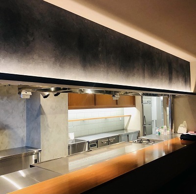 内装には、一つ一つこだわりぬいた素材を職人さんの手で趣のある居心地の良い空間に仕上げました。鉄板は、呉市では最大級の2m40㎝×75㎝の大きな鉄板、そして、本格焼酎やワインが並んだボトルギャラリーもあります。 アイリフォームでは、住宅のリフォームはもちろん、店舗改装、新設も施工させていただきます。