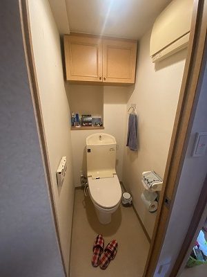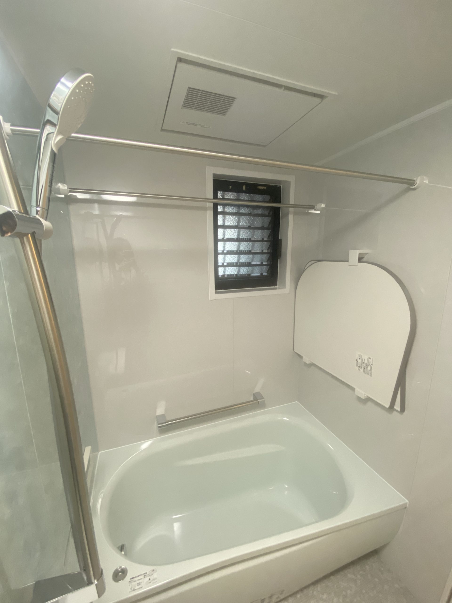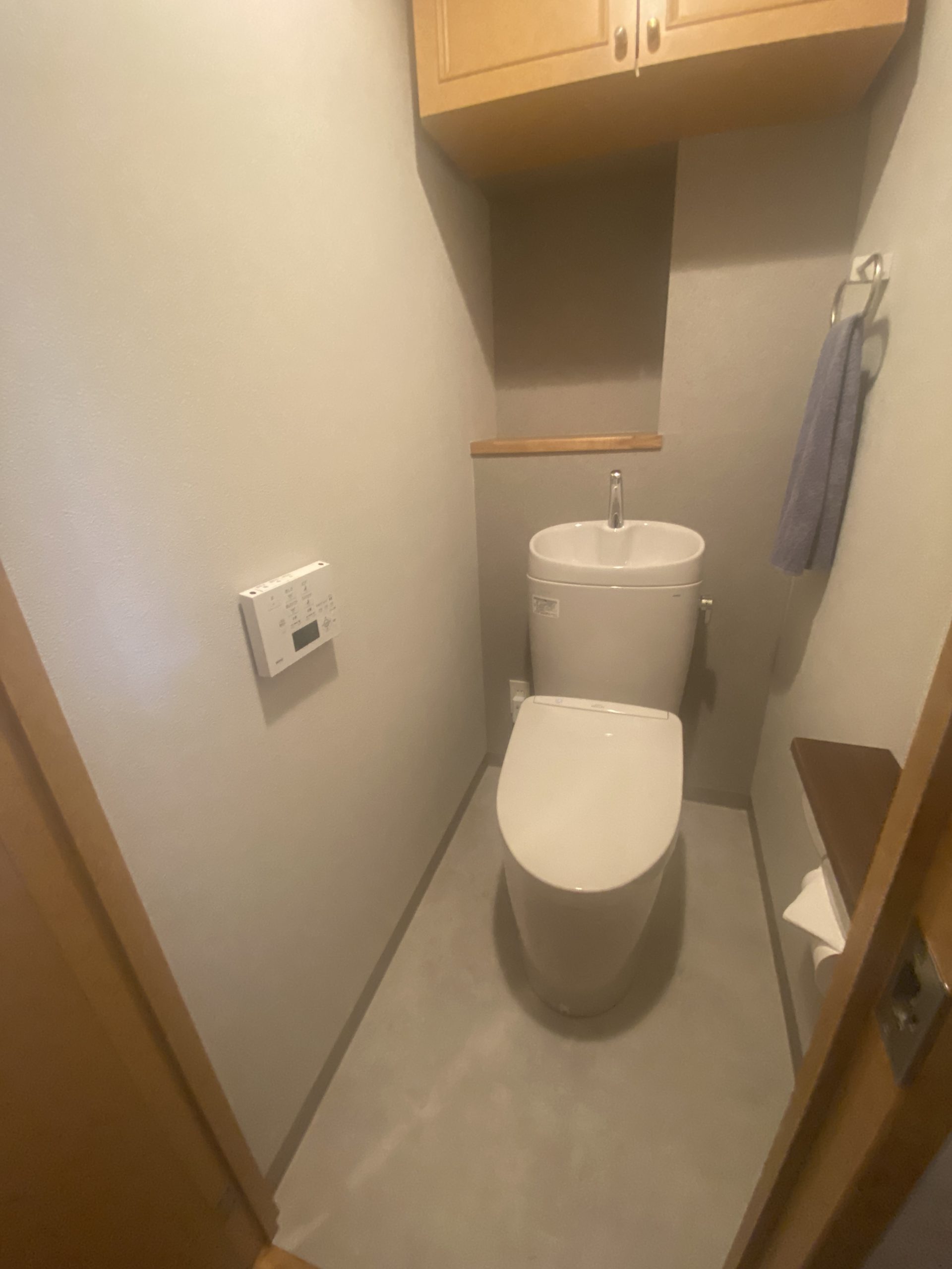 ユニットバスのアクセントパネルは、ティンバーグリーン、浴槽はアクアの色をを採用し、爽やかな清潔感のある浴室になりました。トイレは、便器のカラーをホワイトグレーに、クロスと床をそれに合わせて、落ち着いたおしゃれな空間に生まれ変わりました。モデルルームに同行させていただき、浴槽、トイレの色を一目見て気に入っていただきました。この度は、誠にありがとうございました。