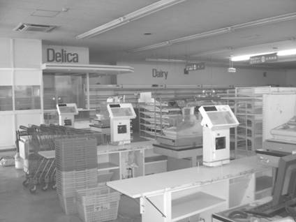 以前は大きなスーパーで陳列棚やレジが並んでいる状態でした。鮮魚室、調理室など普段見る事が出来ない部屋を施工前に見る事が出来ました。