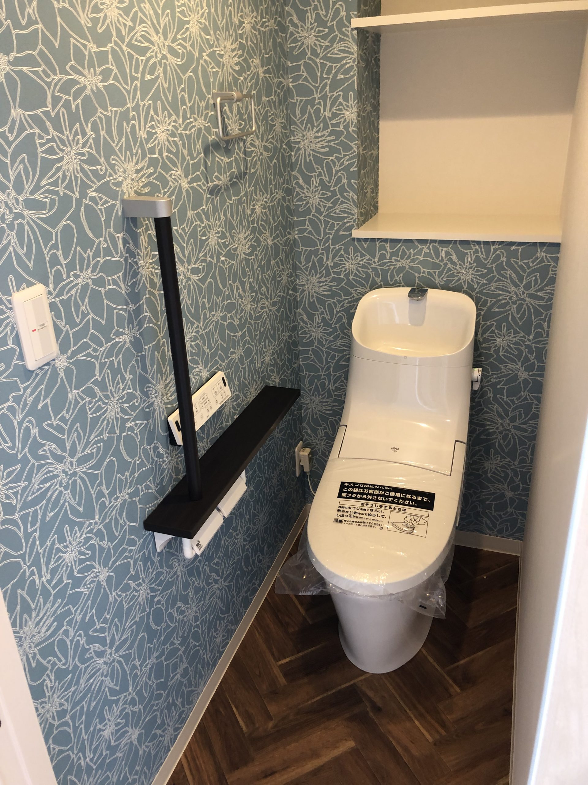 木目調のキッチン、デザインクロス、装飾の施された室内ドアなど随所にこだわりが感じられます。落ち着いた統一感を持たせ、お母様にもご夫婦にもご満足いただける仕上がりになったのではないでしょうか。