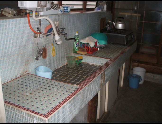 築80年の建物で台所が土間にある様式でした。「お勝手」という言葉が浮かぶレトロなキッチンでした。やはり収納やお手入れの面では奥様も不便な所も多かったと思います。