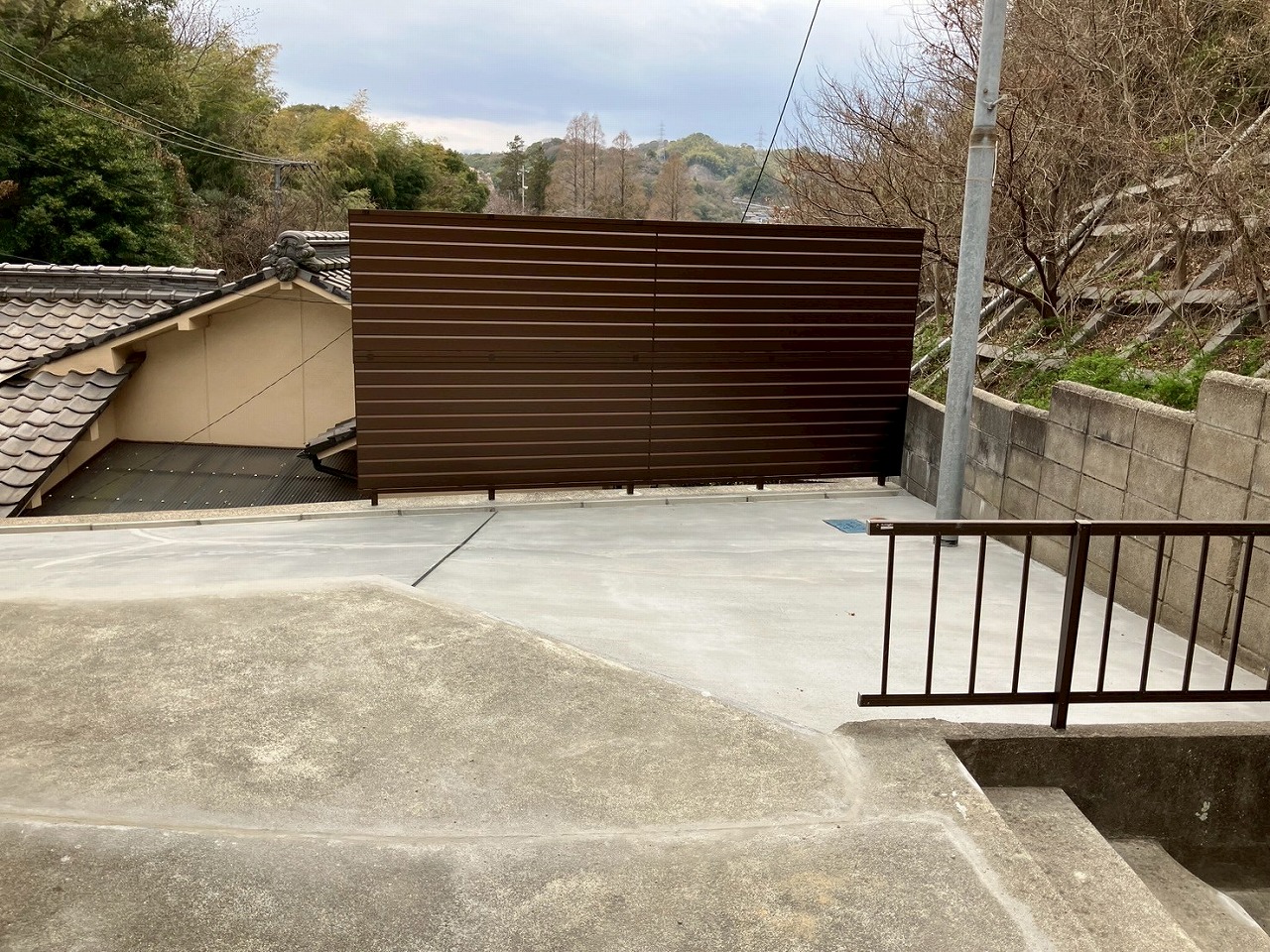 庭木の手入れが手間になるので、生えてこないようにしたい、目隠しの為のフェンス設置したい、とのご要望をいただきました。
