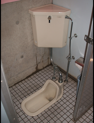 高校のトイレの改修工事です。内装の経年変色、照明の位置により暗い印象のトイレでした。和式便器もありました。