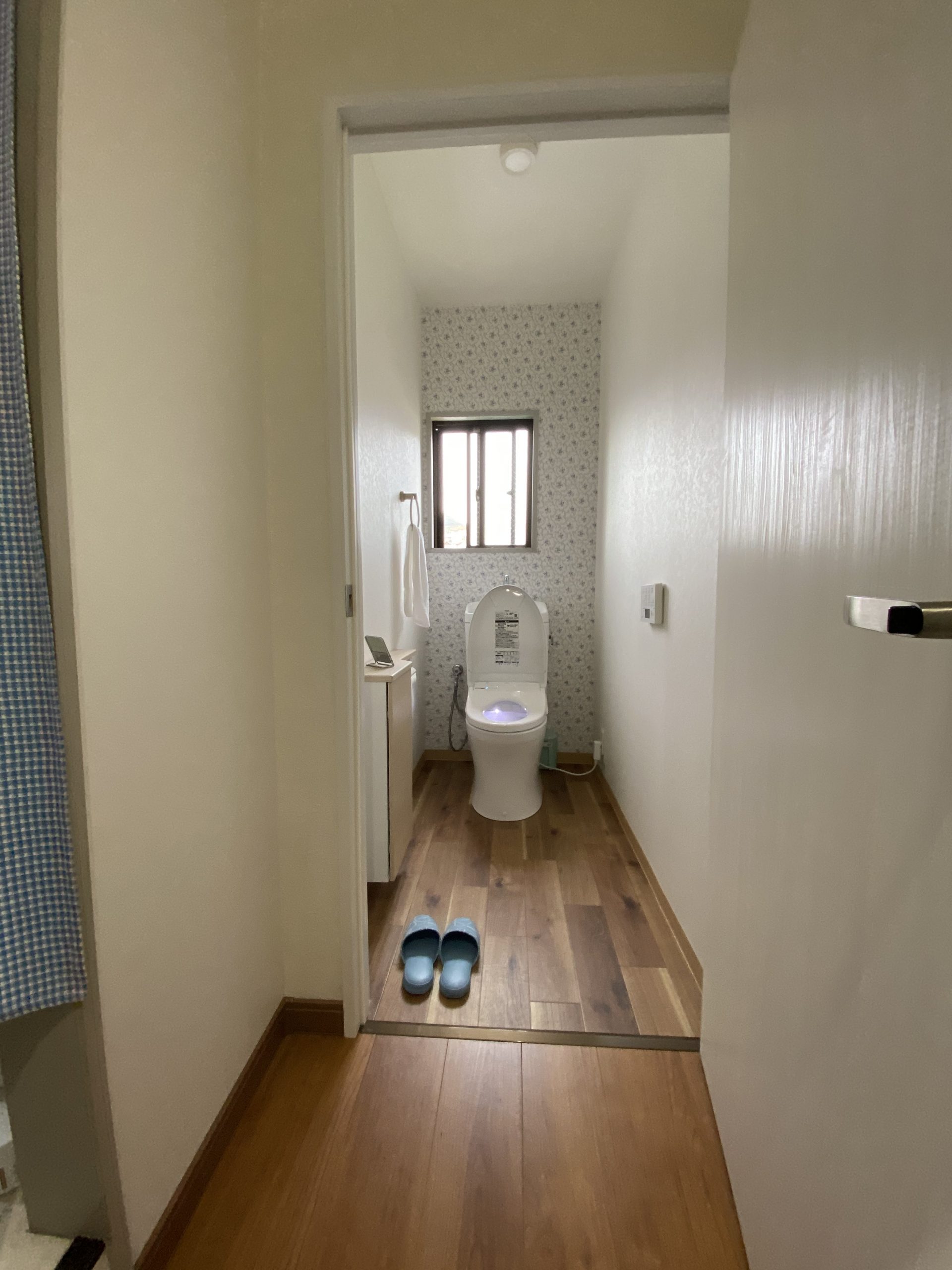 お客様からトイレの経年劣化から、2ヵ所のトイレのリフォームをご希望されました。また、それに伴って2階のトイレと手前廊下との段差解消、トイレ建具の新設交換と浴室のコーキング打ち替えなどご要望を頂きました。