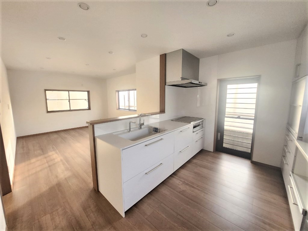 シロアリに侵された基礎のやり替えからスタートし、間取りを変更するために梁補強を行い、断熱材もしっかり入れました。キッチンと食器棚はホワイトで、建具とフローリングはトープグレーに統一され、部屋全体にあたたかみがあり、ご家族が賑やかに楽しく過ごされるような仕上がりになりました。引渡し間際にお子様が誕生され、3世代の新しい思い出がたくさん刻まれていく素敵なお家が完成いたしました。ご家族の皆様本当に仲が良く、計画段階からいつも賑やかで楽しく打ち合わせをさせていただき、工事を進めさせていただきました。この度は誠にありがとうございました。