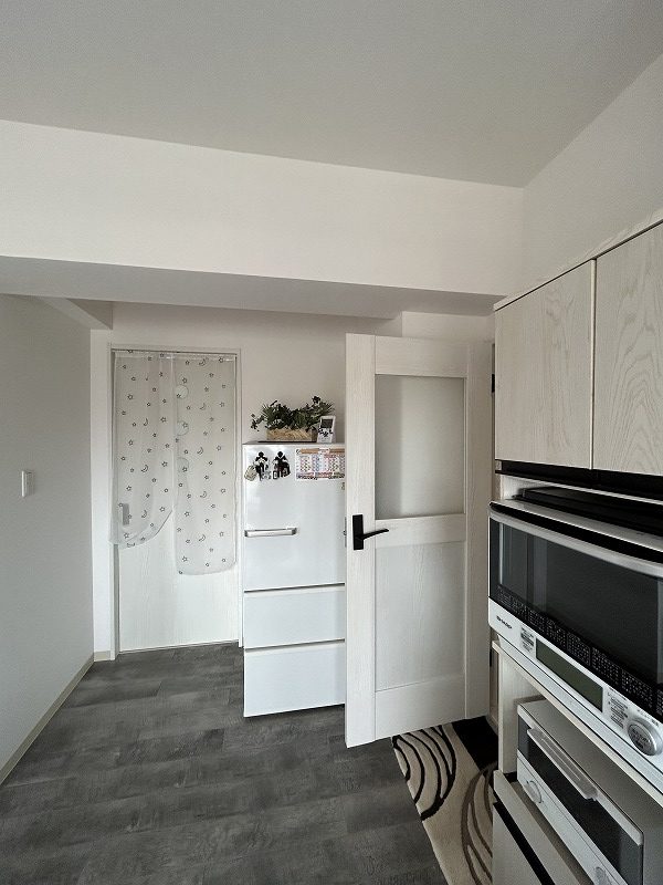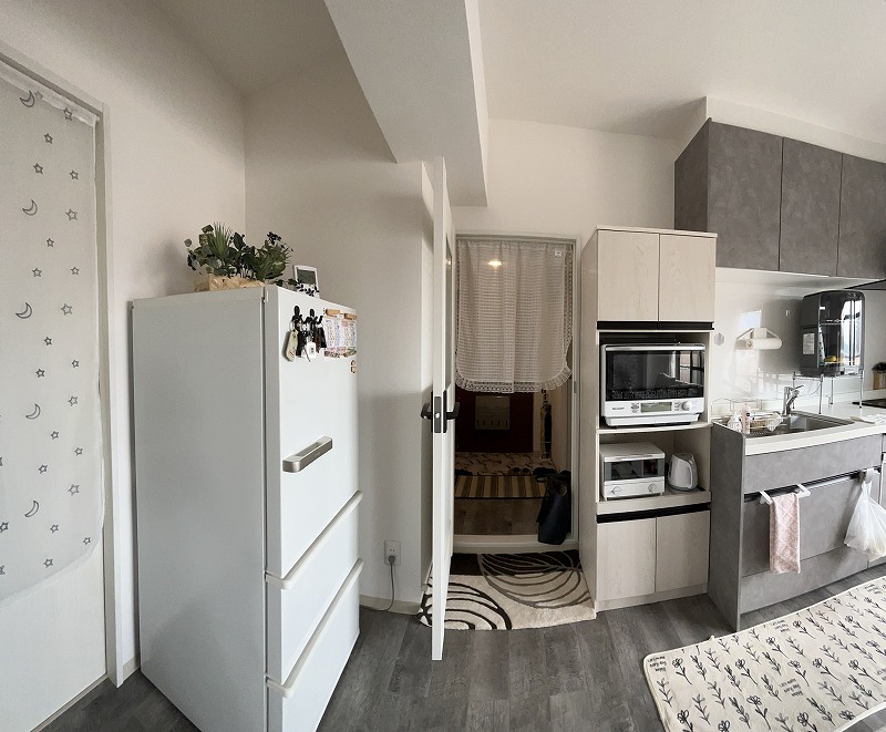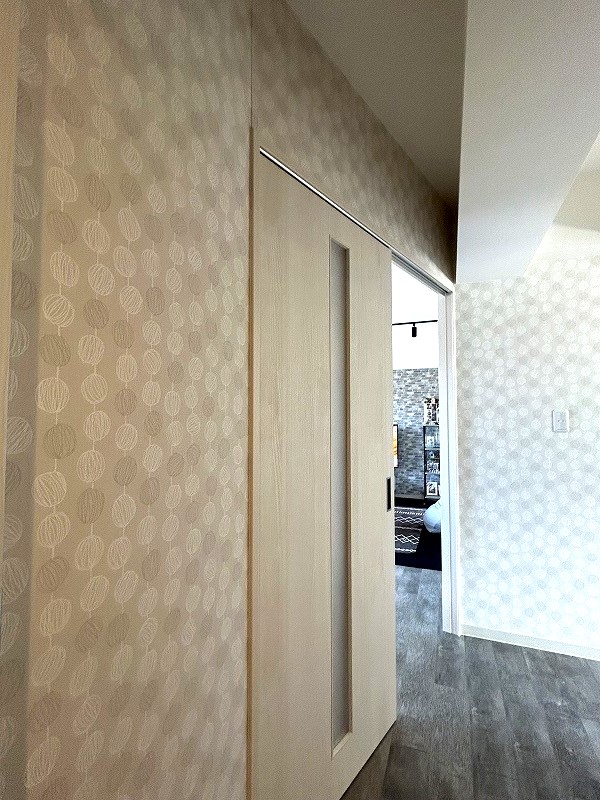 LDKに面した部屋の間取りのため、リビングに居る人に時間帯を気にせずに部屋に出入りできるようにするには、通路をどのように確保するかという計画から始まりました。実際に床にテープを貼り、施主様に空間を認識していただきました。壁ができることで、圧迫感と通路部分に入る光の程度もご説明いたしました。計画図面と何度も照らし合わせながら、施主様と打ち合わせを重ねました。建具の選定も既存の部屋のイメージと違和感がないように、また、通路部分に明かりを取り込めるデザインのものを提案させていただきました。お子様の成長とともに、家の形も変えることができるのは、リフォームの良さだと改めて実感させていただきました。この度はありがとうございました。